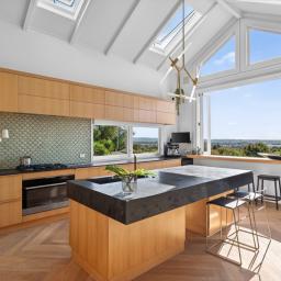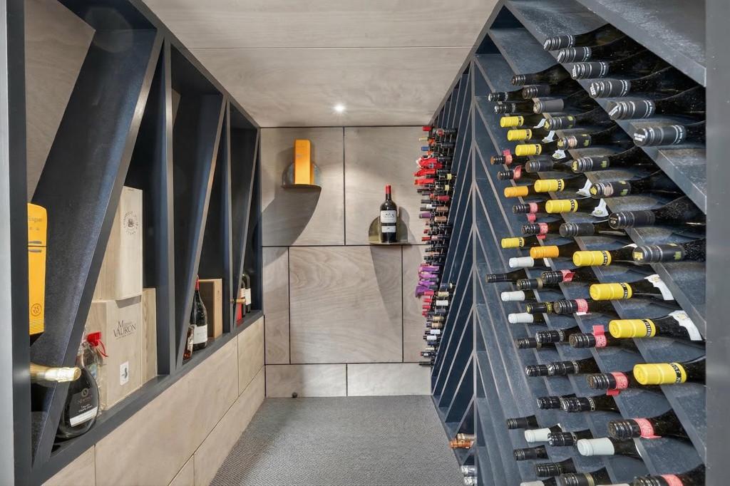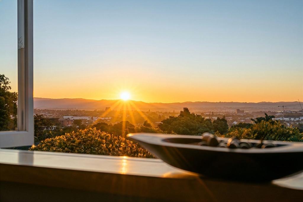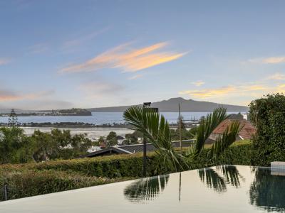 The gourmet kitchen is as functional as it is striking, complete with premium appliances, stone surfaces and a fully appointed scullery. Discreetly concealed within oak cabinetry, a hidden doorway reveals a beautifully executed wine cellar - a standout feature for entertainers. Expansive windows invite light and warmth while framing west-facing views and capturing spectacular sunsets. Large sliding doors enhance the connection to the outdoors, while living extends seamlessly to a wraparound verandah, where elevated outlooks across Tamaki Makaurau lead down to the resort-style pool and spa.
