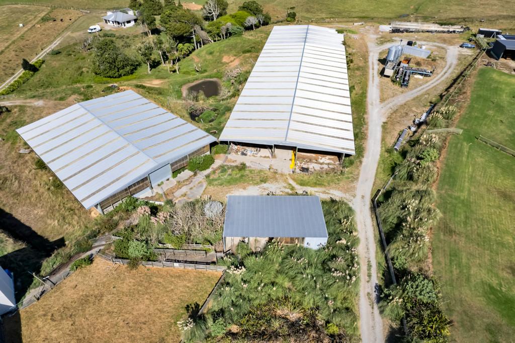 The sheds include a 100mx 26m solidly constructed building with concrete floor together with a second smaller version at 36mx26m. Also a three bay ex milking shed, a 5 bay implement shed, a second ex milking shed (currently converted to an abattoir) plus three large feed storage silos.