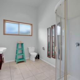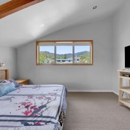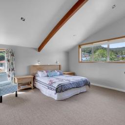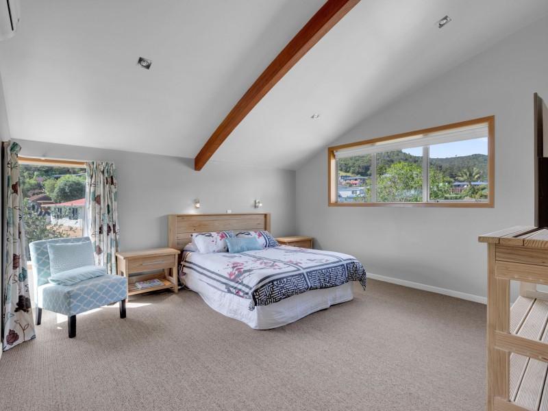 Upstairs, you’ll find three well-appointed bedrooms and two bathrooms, including a generous master suite complete with a large walk-in wardrobe and private ensuite. Wake up to sweeping views across Waiomu Valley, with glimpses of the ocean and surrounding hills creating a truly special retreat.