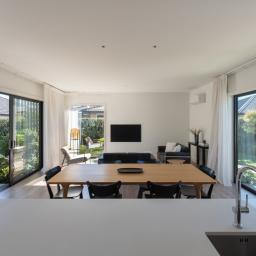 At the heart of the home is a stunning open-plan kitchen, dining, and living area, enhanced by large sliding doors that perfectly connect indoor and outdoor spaces-ideal for entertaining or simply relaxing in comfort.