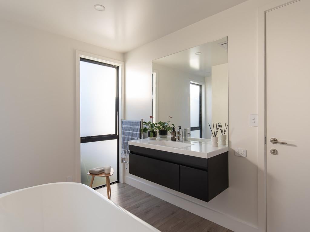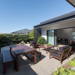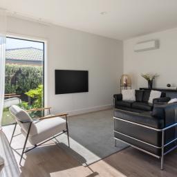 This beautifully crafted contemporary home completed in 2023 by Bruce Design & Build has been thoughtfully designed for effortless living, with seamless indoor-outdoor flow to private, sun-soaked landscaped patio areas.