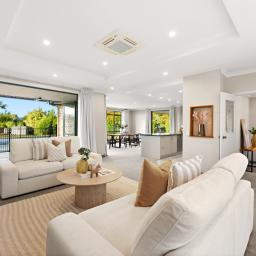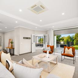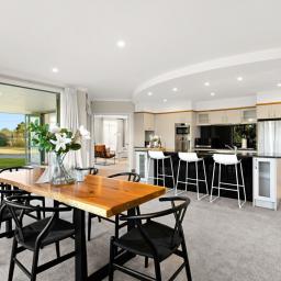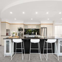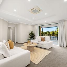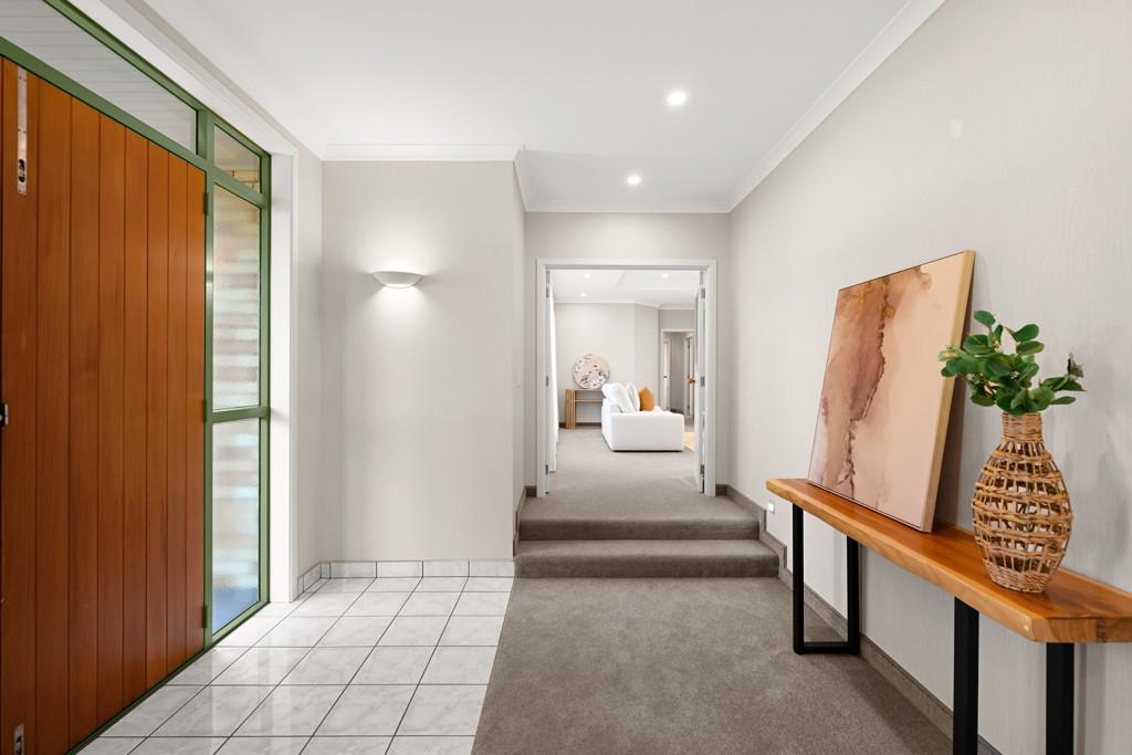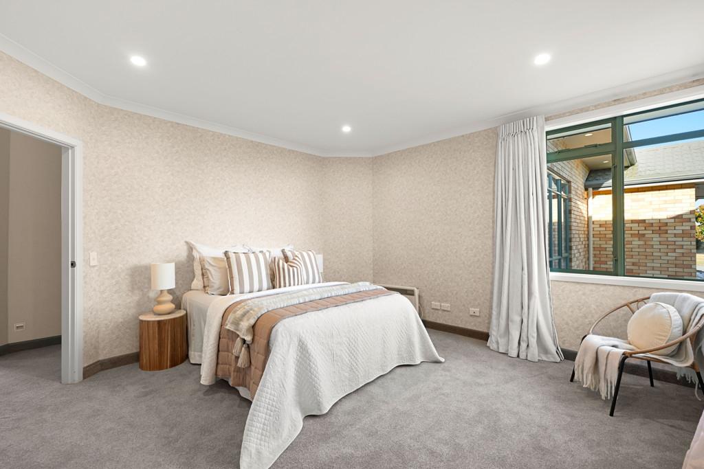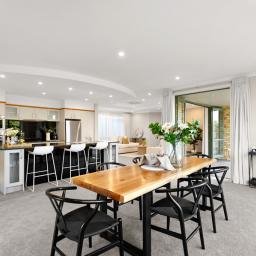 The solidly constructed five-bedroom home offers generous proportions throughout, centred around a light-filled open-plan kitchen, dining, and living area that forms the hub of everyday life. Designed for relaxed family living and easy entertaining, this space flows seamlessly to the outdoors through multiple access points, creating effortless indoor-outdoor connection.