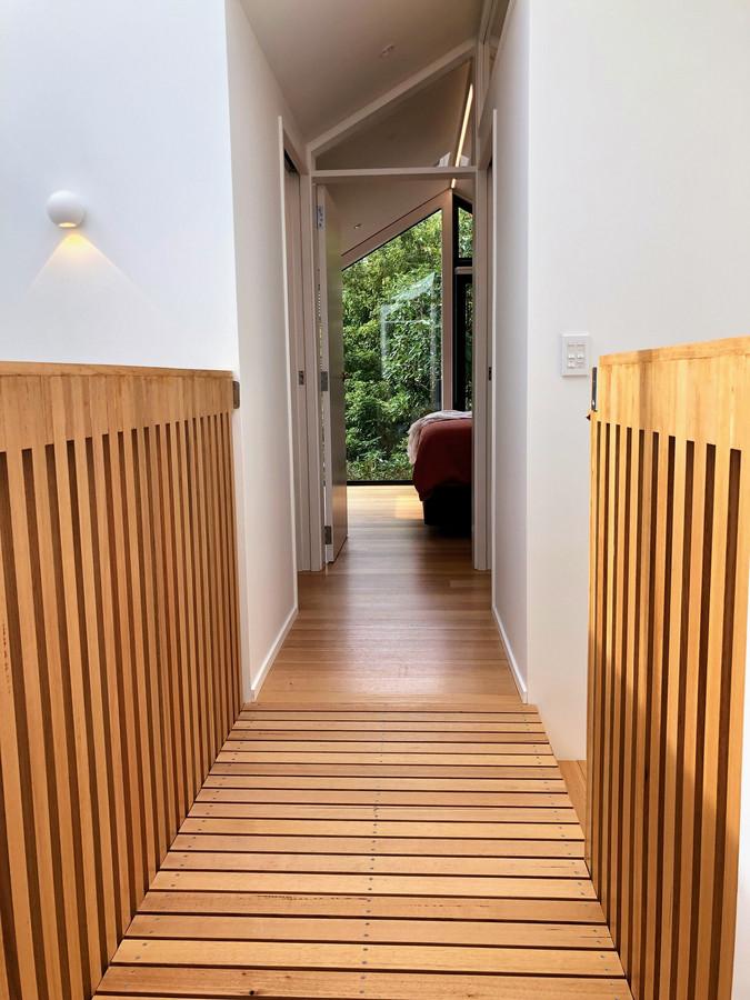 - Sublimely designed with contemporary flair, the polished concrete heated ground floor contrasts birch ply ceilings and joinery and Tasmanian oak floors on the upper levels.