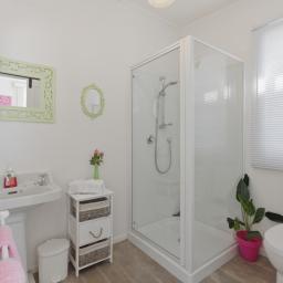 It has an open plan kitchen and dining area with an effective and efficient low combustion wood burner which heats the entire home. The modern kitchen has gas hobs with an electric oven, dish washer, waste disposal and pantry.