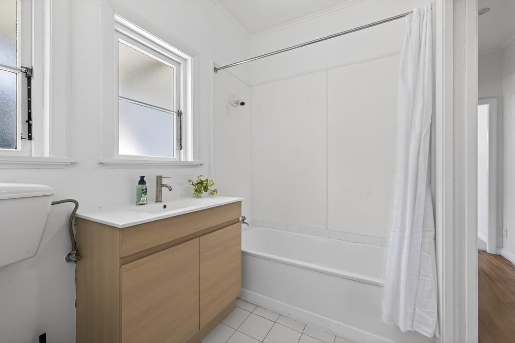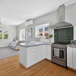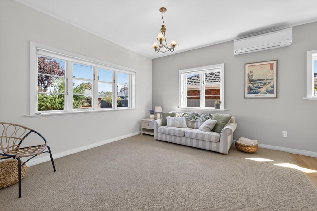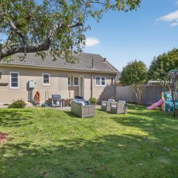 The family bathroom includes a shower over bath, while a heat pump ensures year-round comfort. Outside, the private sun-soaked yard is perfect for kids to play, and a garden shed provides extra storage. Off-street parking adds convenience, and the property sits on a freehold 466m2 section.