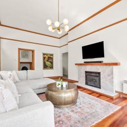 Gracing Heretaunga's exclusive Golden Mile, 2 Barton Road is a distinguished 1910s villa that effortlessly marries timeless character with refined contemporary living. High stud ceilings and generous proportions create an immediate sense of elegance and volume, while tasteful modernisation ensures every comfort is thoughtfully catered for. The beautifully appointed master suite is a true retreat, complete with a luxurious ensuite and an exquisite new walk-in wardrobe, with an adjoining study that provides an ideal work-from-home space or private sanctuary. Still, there is ample room for family and guests, with four generously sized bedrooms and three separate living areas offering sophisticated flexibility for both formal and casual entertaining. Set on a fully fenced corner site with dual access and excellent off-street parking, this residence enjoys enviable convenience to local cafés, esteemed schools, and key amenities, making it a rare opportunity to secure a high-calibre home in one of Heretaunga's most coveted addresses.