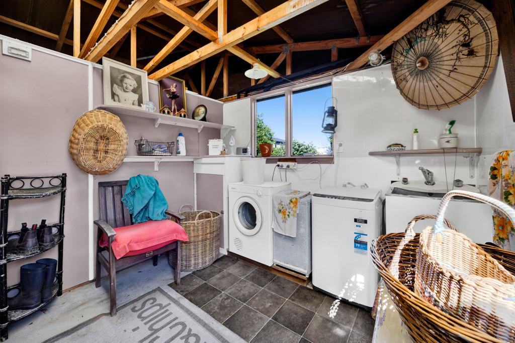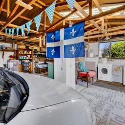 The garage is generous in size, and features a workshop area at the front and a decent sized laundry area.