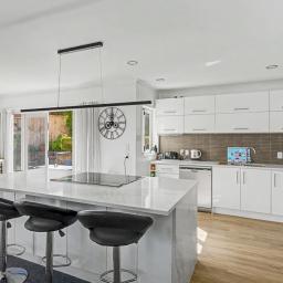 At the heart of the home is a contemporary, state-of-the-art kitchen, complete with a butler's pantry and quality appliances, ideal for both everyday living and entertaining.
