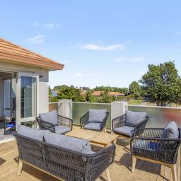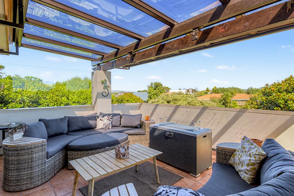 Two generous living areas flow seamlessly to separate private outdoor spaces, where you can relax and take in elevated views towards Kapiti Island and the surrounding landscape.