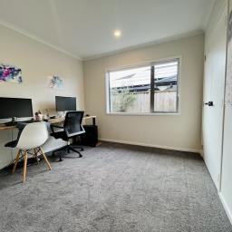 At the heart of the home, the gourmet kitchen offers floor-to-ceiling cupboard space and excellent storage, flowing seamlessly into the light-filled open plan dining and living area. A heat pump ensures year-round comfort while the layout is perfect for everyday living and entertaining.