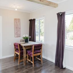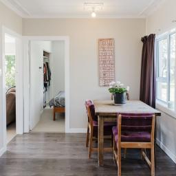 The sun-soaked living area creates a warm and inviting space to relax, while the open-plan kitchen and dining area forms the heart of the home—perfect for everyday living and entertaining. Recent updates, including new carpet and vinyl, add a fresh feel throughout.