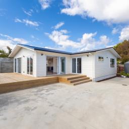 The modern open-plan lounge and kitchen create an easy hub for everyday living, while the spacious decking area connects seamlessly to the lounge for effortless indoor-outdoor flow. The heat pump provides year-round comfort to complement the double glazing, and the overall design is low-maintenance and easy to enjoy, making this an ideal option for buyers wanting less upkeep and more lifestyle from day one.