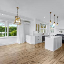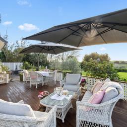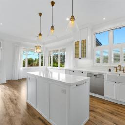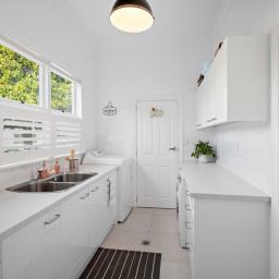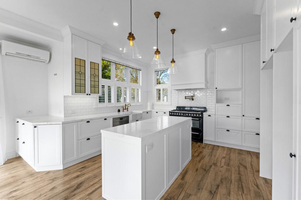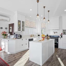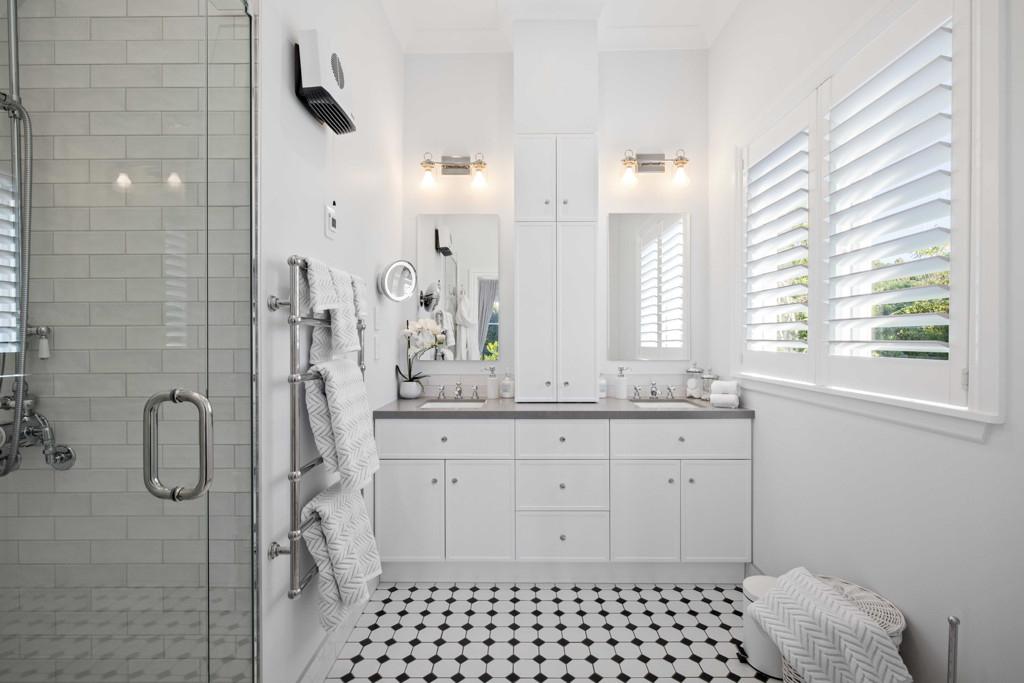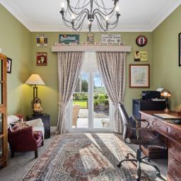 With four light-filled bedrooms, including a luxurious master suite featuring an ensuite and double wardrobes, a well-appointed family bathroom complete with a claw foot bath, plus an office, this villa accommodates family and guests in style. Additional amenities include a main bathroom, a separate powder room, and a well-appointed laundry with ample storage, ensuring every need is easily met.