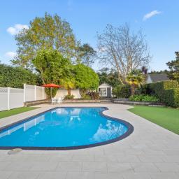 Enjoy the beauty of fully landscaped gardens, highlighted by mature native trees and a delightful rose garden, complete with meandering brick pathways that invite exploration. Conveniently positioned just 6 minutes from Pukekohe, 4 minutes from motorway on-ramps, 50 minutes from Auckland CBD, and 29 minutes from Auckland Airport, this villa is also within easy reach of highly regarded local country schools.