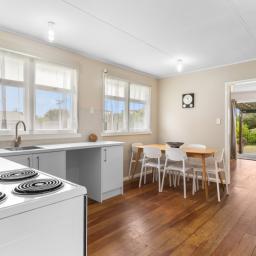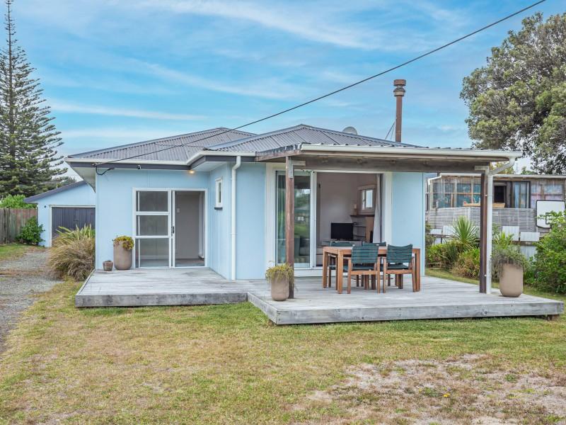 This classic Kiwi bach offers relaxed, easy living with three generous bedrooms. The lounge opens to a covered patio, the perfect spot to unwind after a day at the beach, while the updated kitchen and dining area make entertaining effortless. There is a woodburner for the cooler evenings.