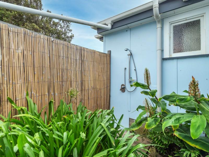 Set on a fully fenced section with ample lawn for tents, and a fantastic outdoor hot water shower perfect for rinsing off after a swim.