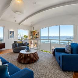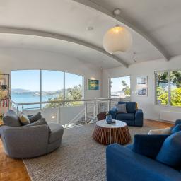 This immaculately presented executive home is superbly elevated for the most stunning views across Wellington harbour and beyond. A magnificent architecturally designed property which offers wonderful spacious light-filled interiors maximising the sun and beautiful vista.